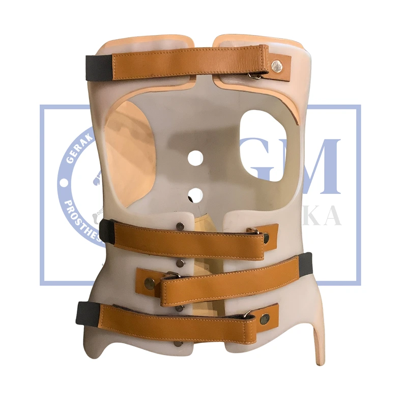 Alat ortotik yang dirancang untuk membantu menopang dan mengoreksi kelengkungan tulang belakang pada pasien dengan kondisi skoliosis.
