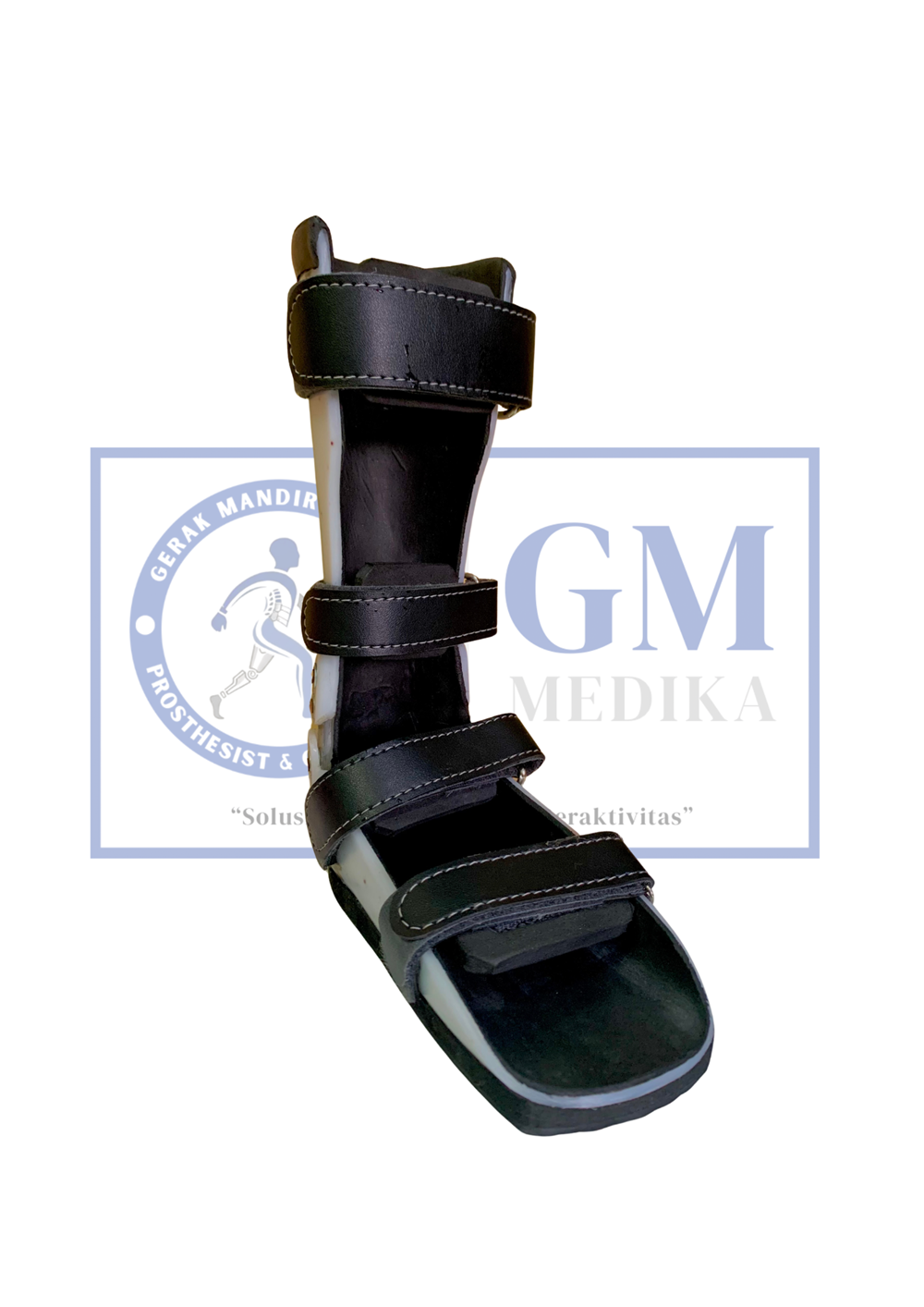 Dibuat khusus untuk menstabilkan pergelangan kaki, mencegah foot drop (kaki terseret), dan meningkatkan kemampuan berjalan. Umumnya, AFO brace digunakan oleh pasien stroke, cerebral palsy, cedera saraf, atau cedera sumsum tulang