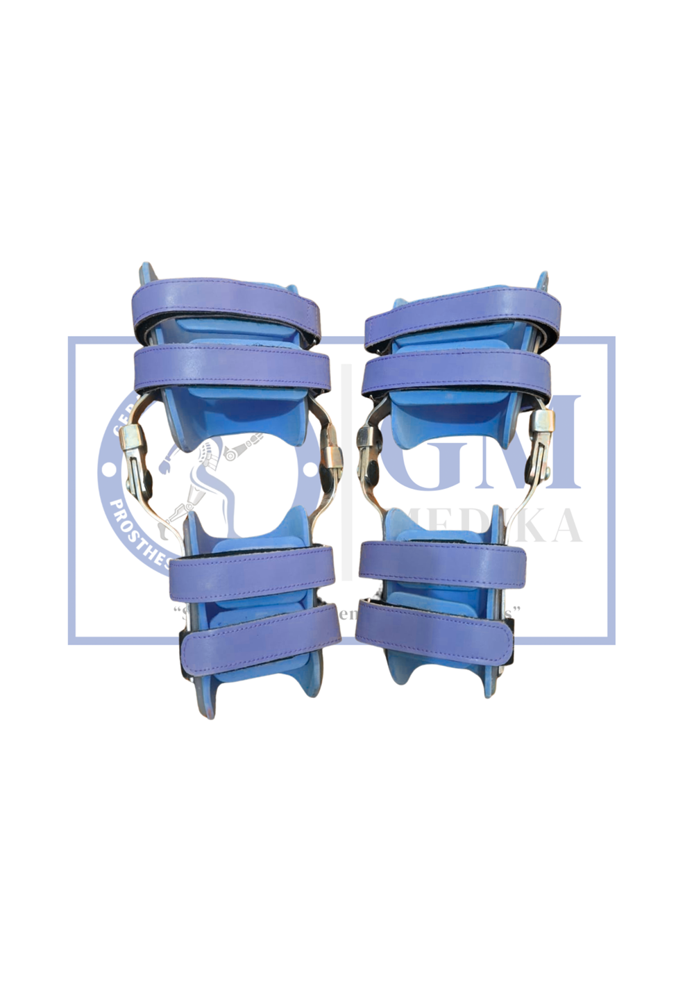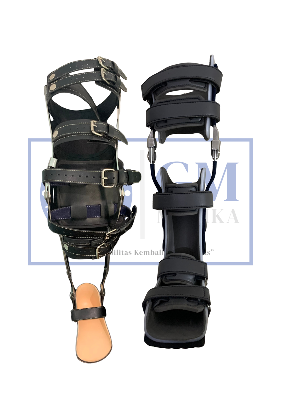 Terbuat dari thermoplastic yang dibentuk khusus dengan bar bagian sisi samping dan berbagai sendi lutut yang dirancang untuk memberikan dukungan dan koreksi pada lutut, pergelangan kaki, dan kaki. Seperti kaki polio, kaki X (genu valgum), kaki O (genu varum).